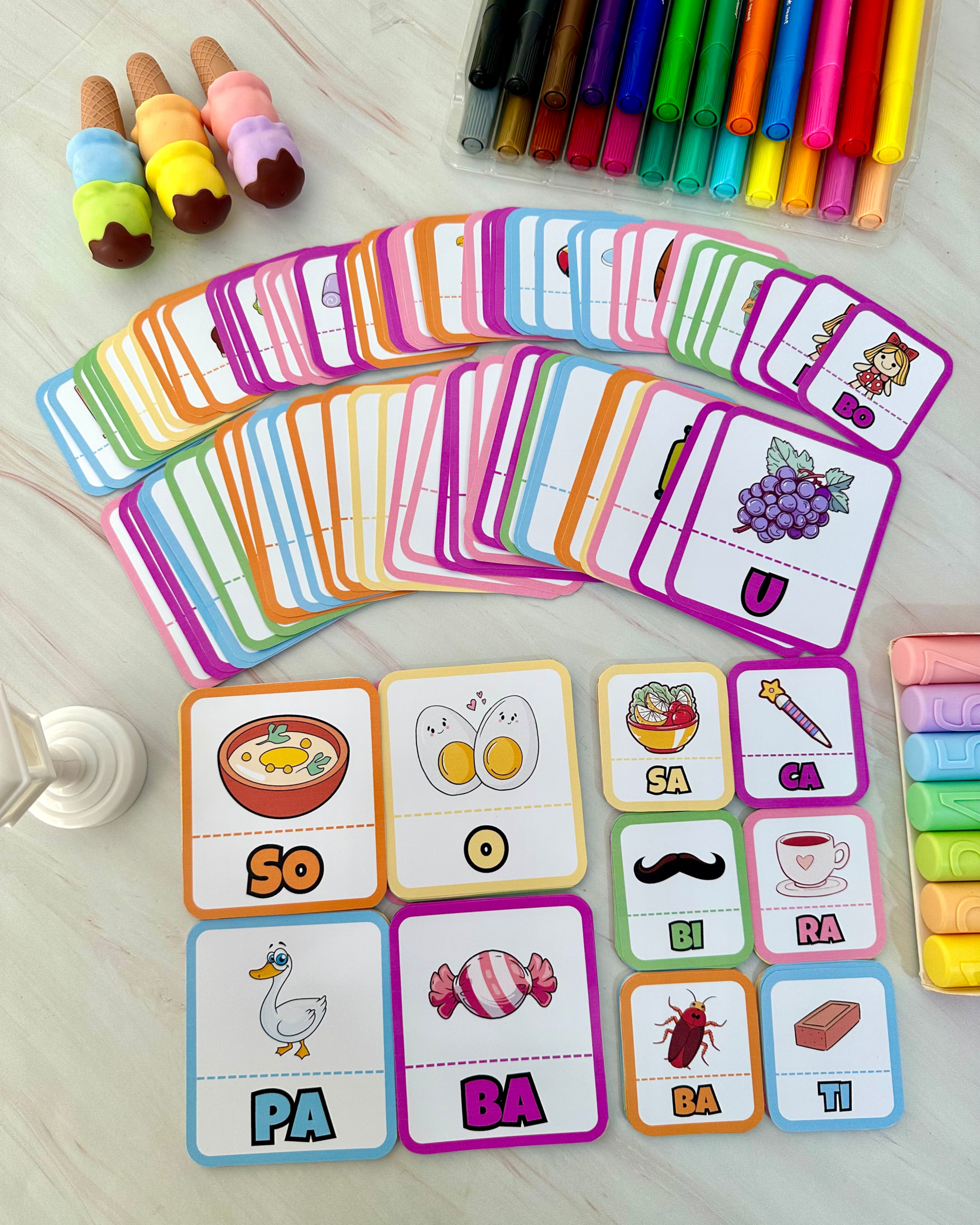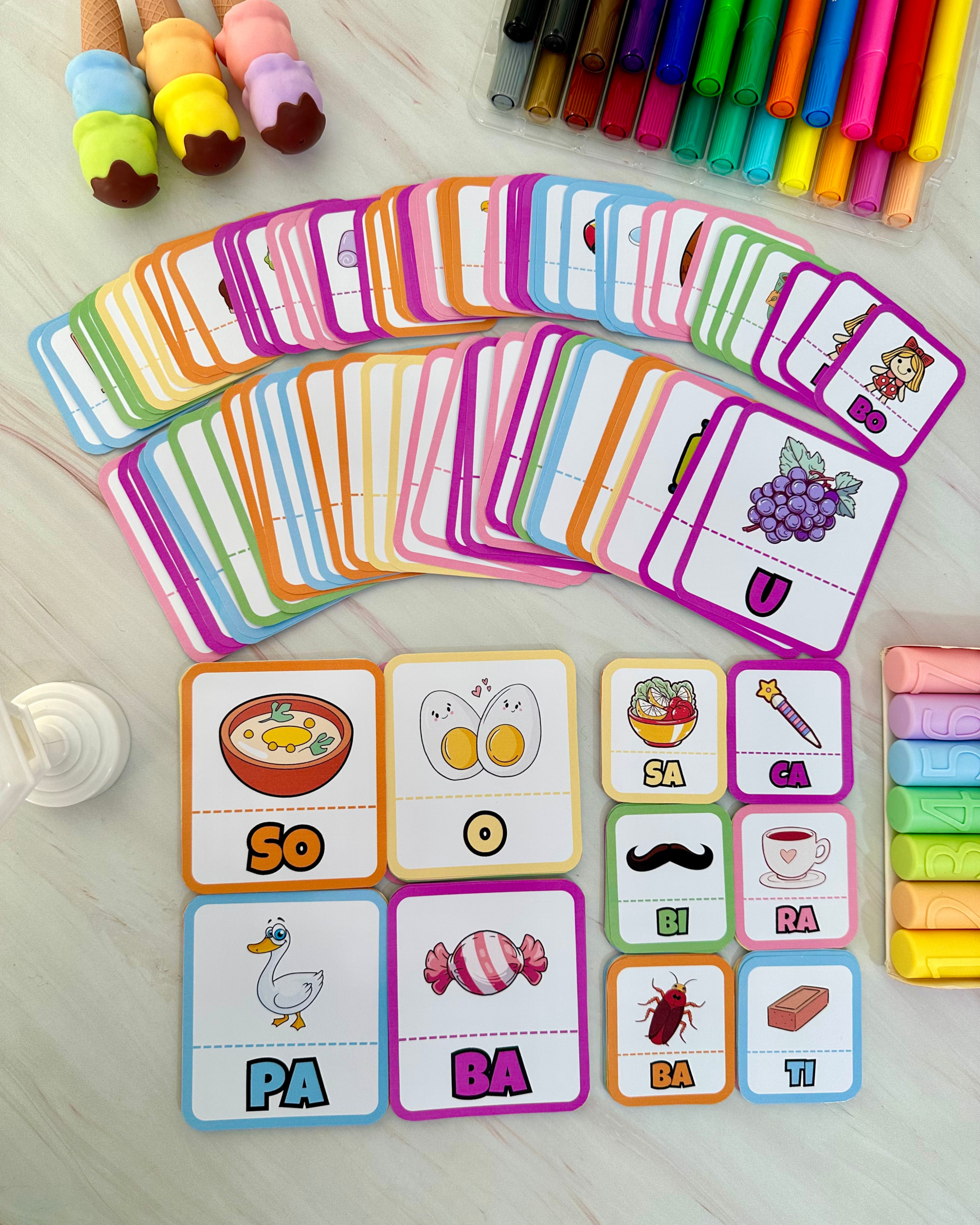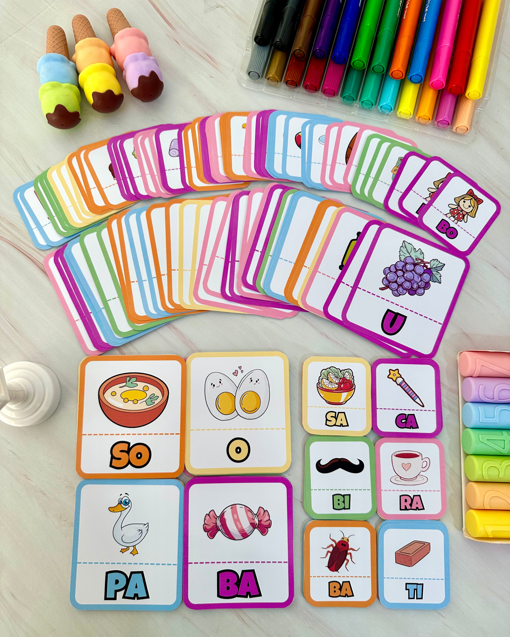 Disponível em formato PDF pronto para impressão, o material contém diversas fichas com sílabas que permitem formar palavras, promovendo o reconhecimento, a associação e a fixação dos sons de maneira interativa e inclusiva.