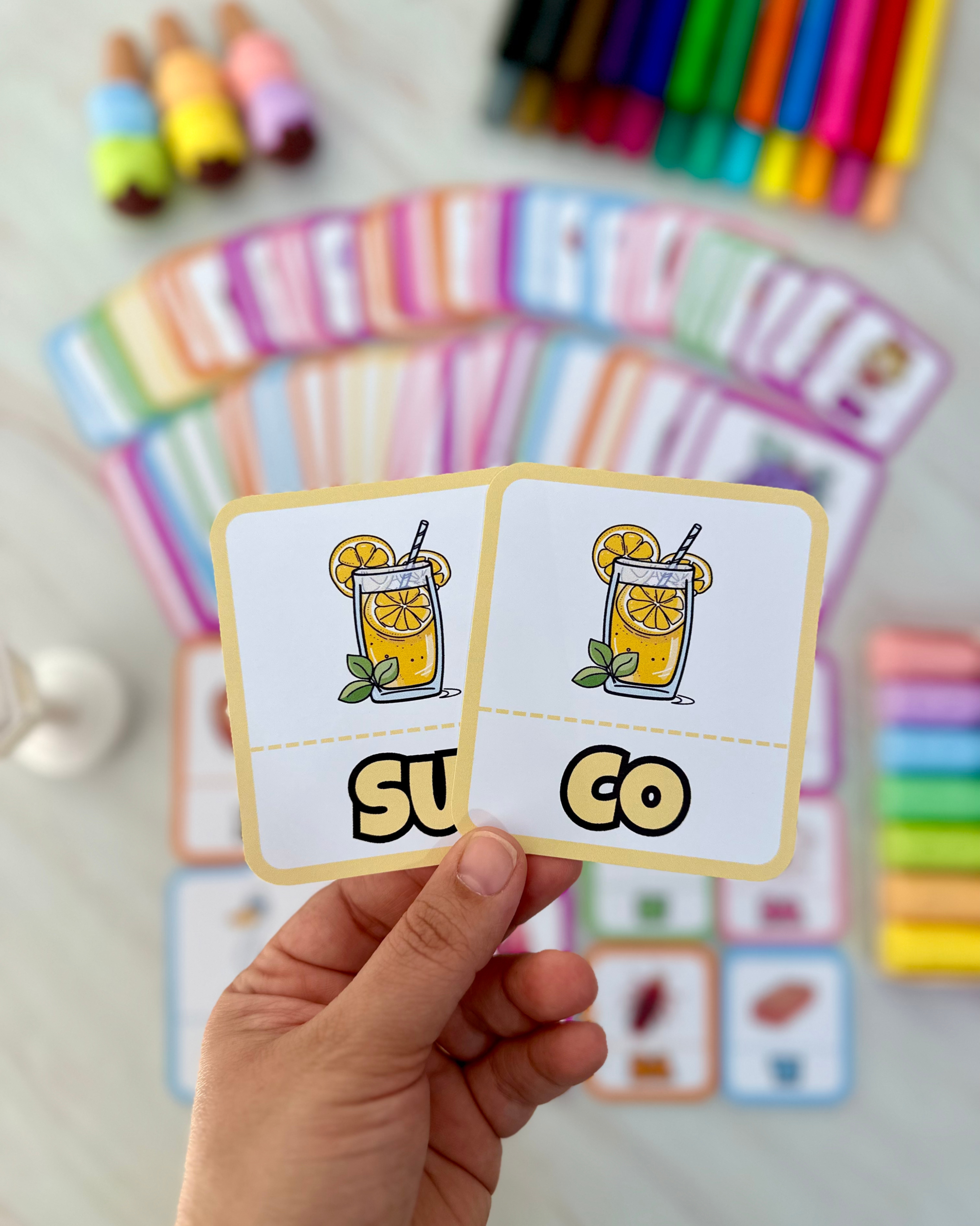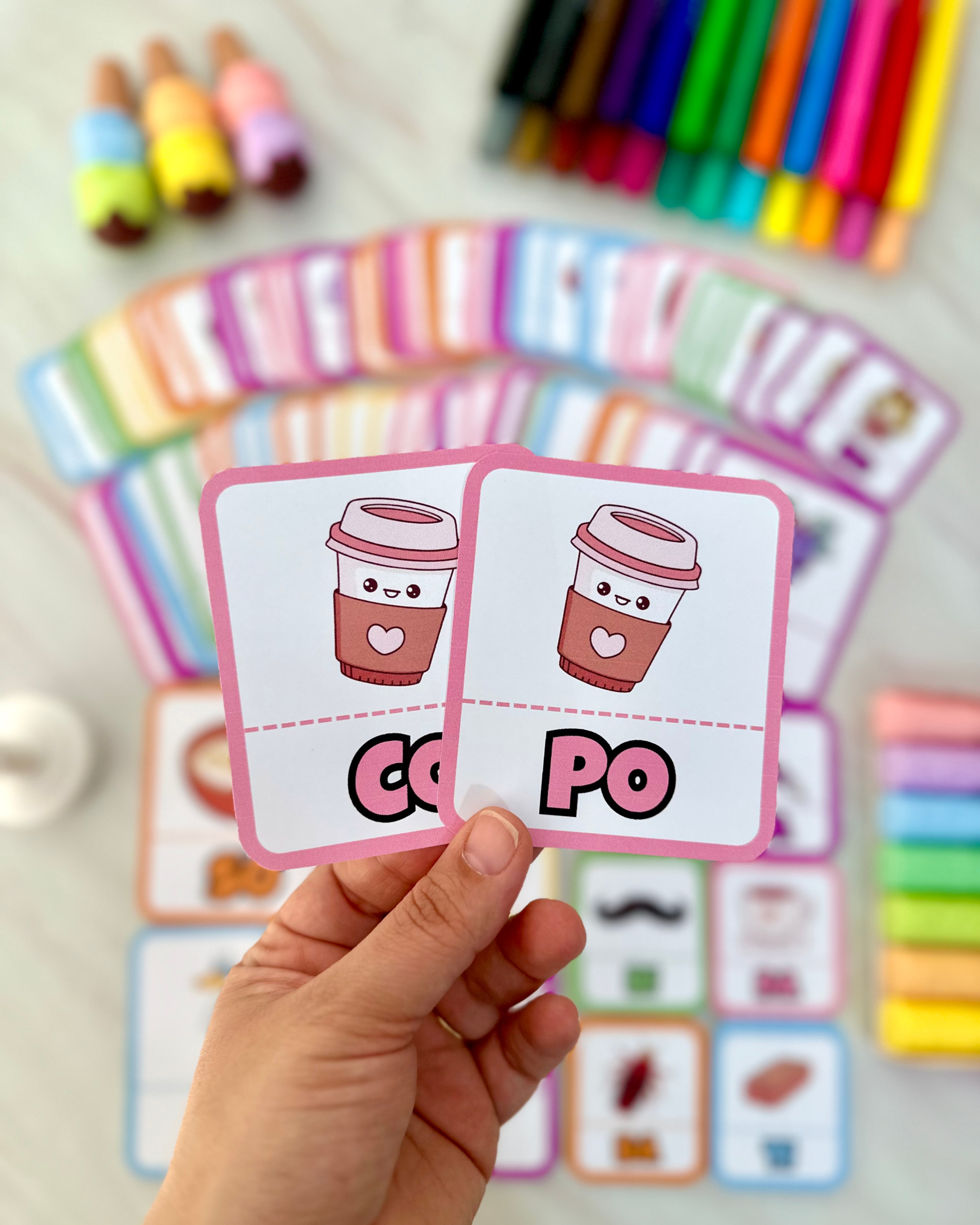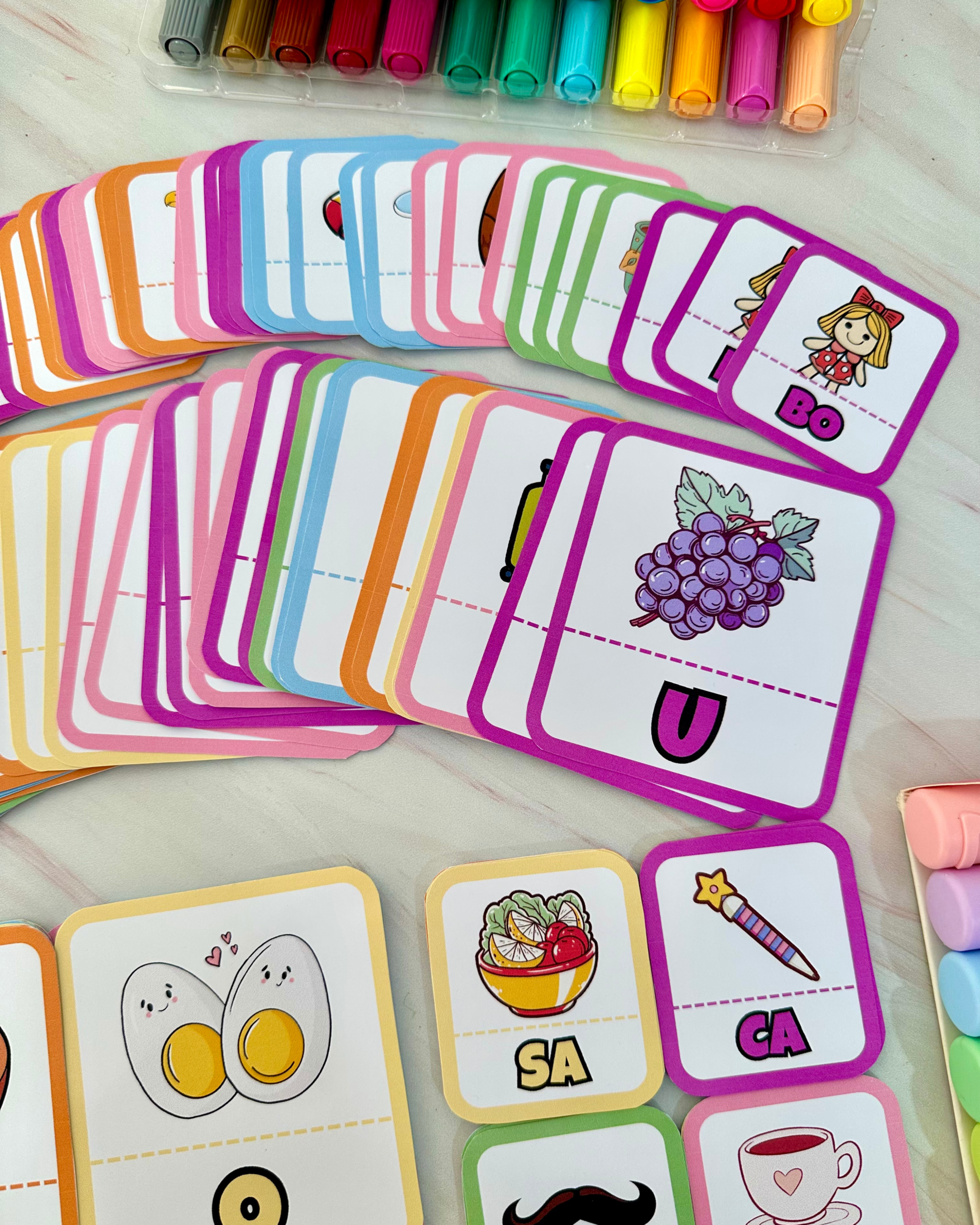 Disponível em formato PDF pronto para impressão, o material contém diversas fichas com sílabas que permitem formar palavras, promovendo o reconhecimento, a associação e a fixação dos sons de maneira interativa e inclusiva.