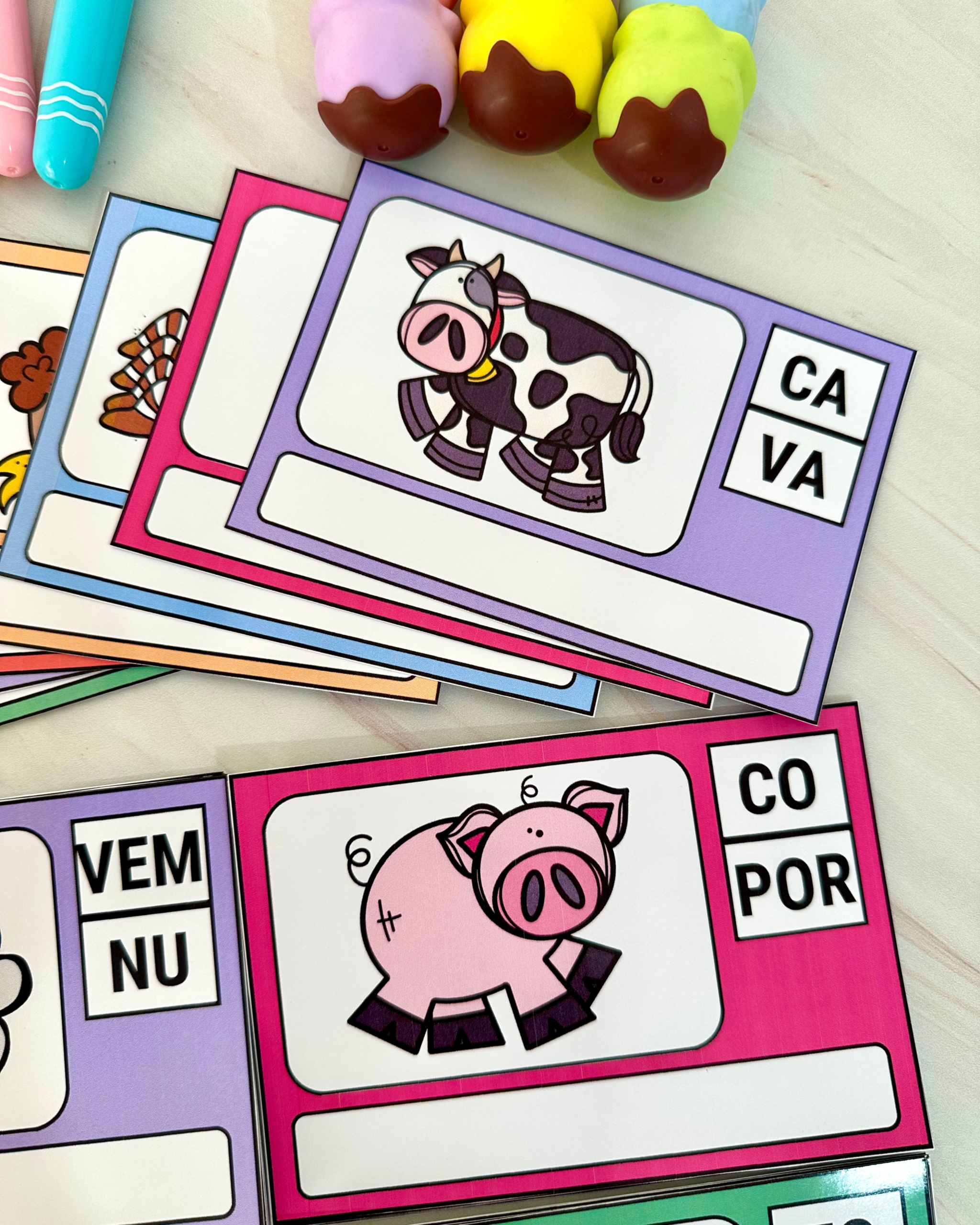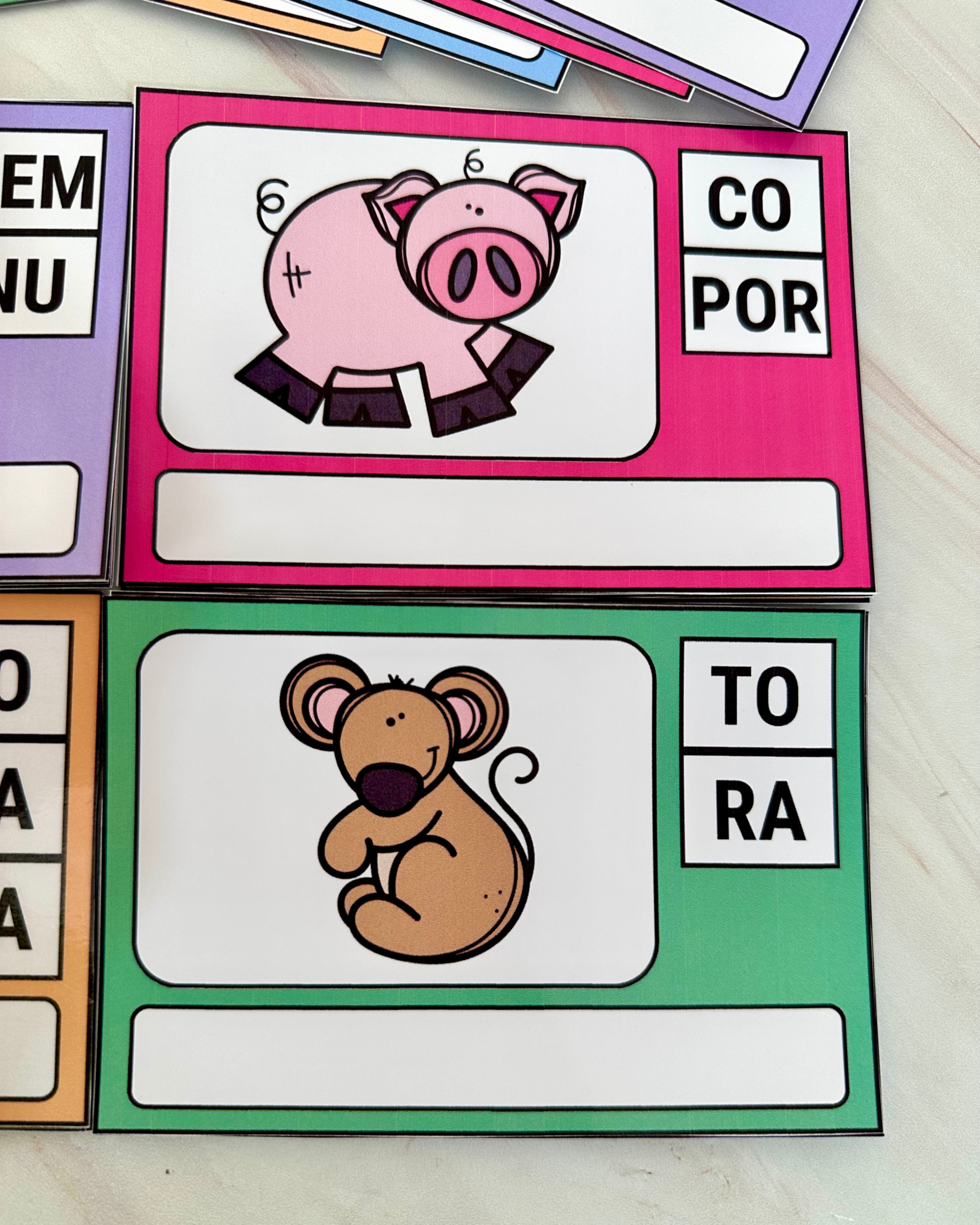 O Organizando as Sílabas é um recurso pedagógico desenvolvido especialmente para auxiliar no reconhecimento e na formação de palavras por meio da organização correta das sílabas.