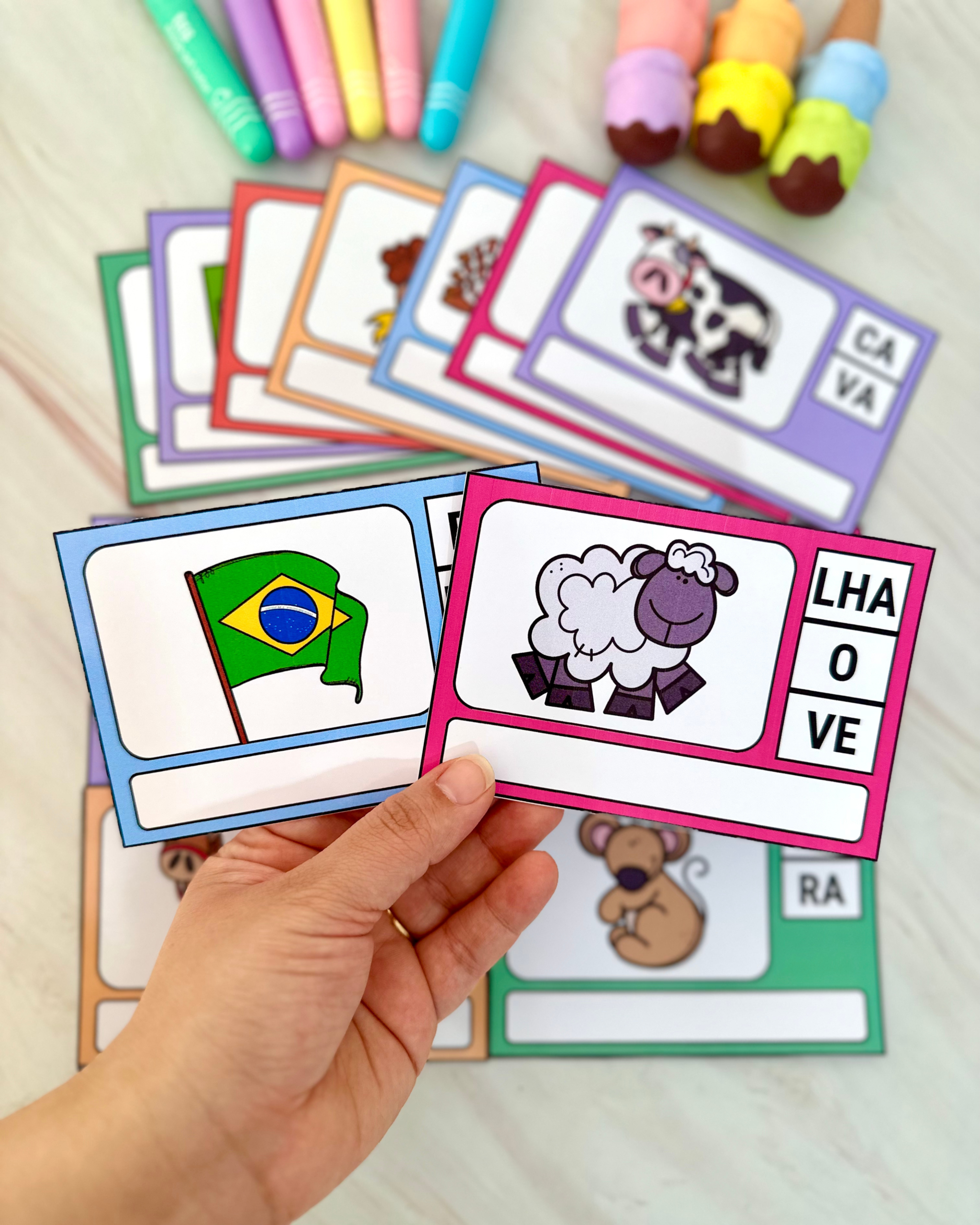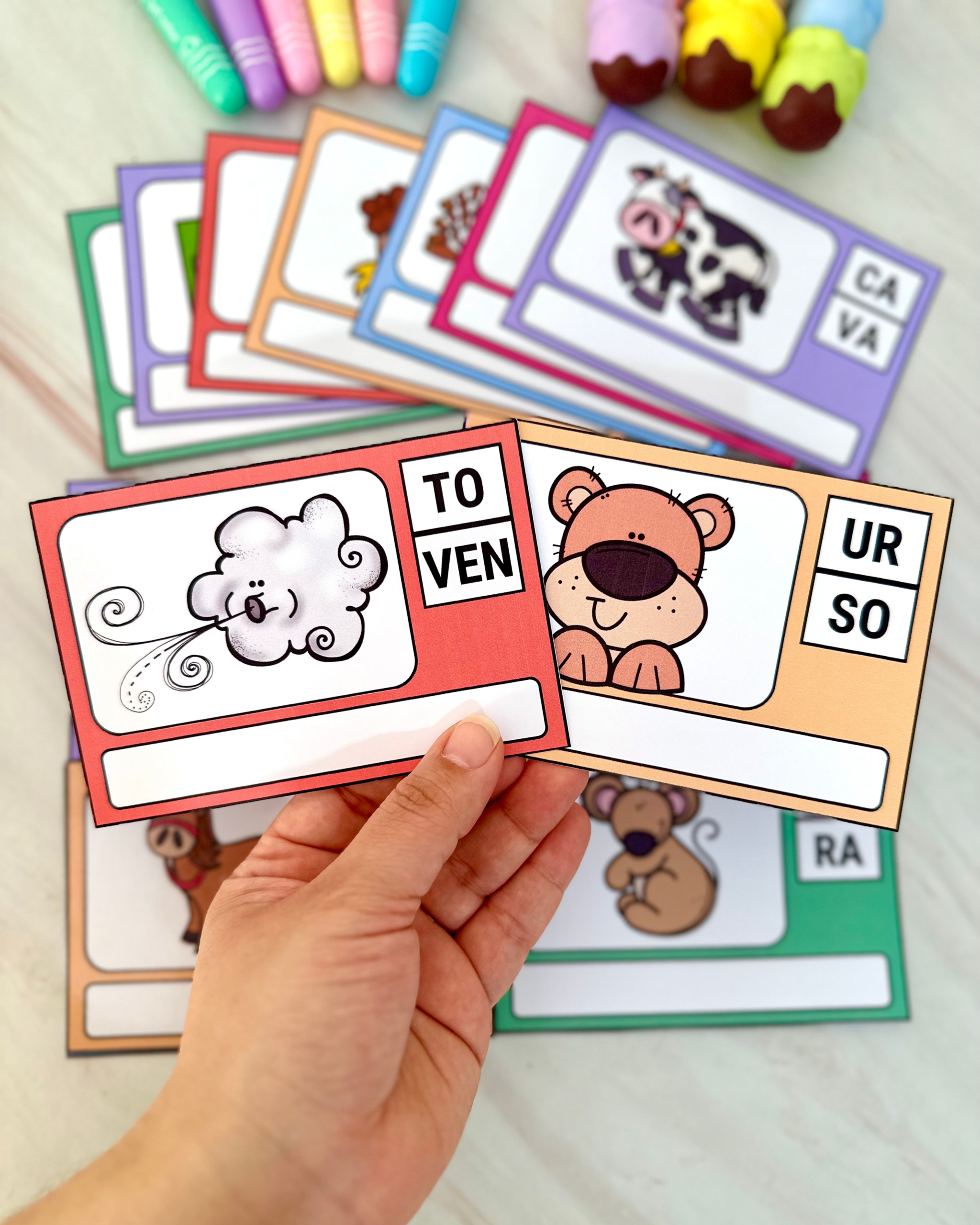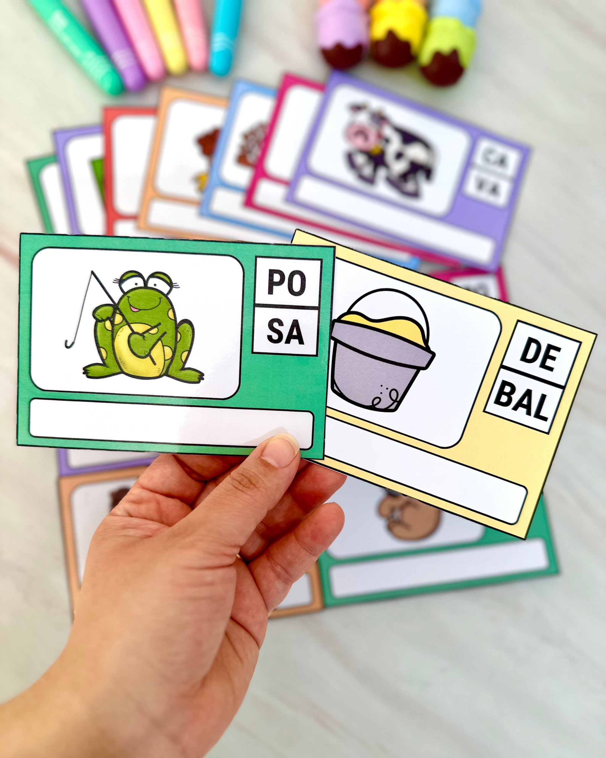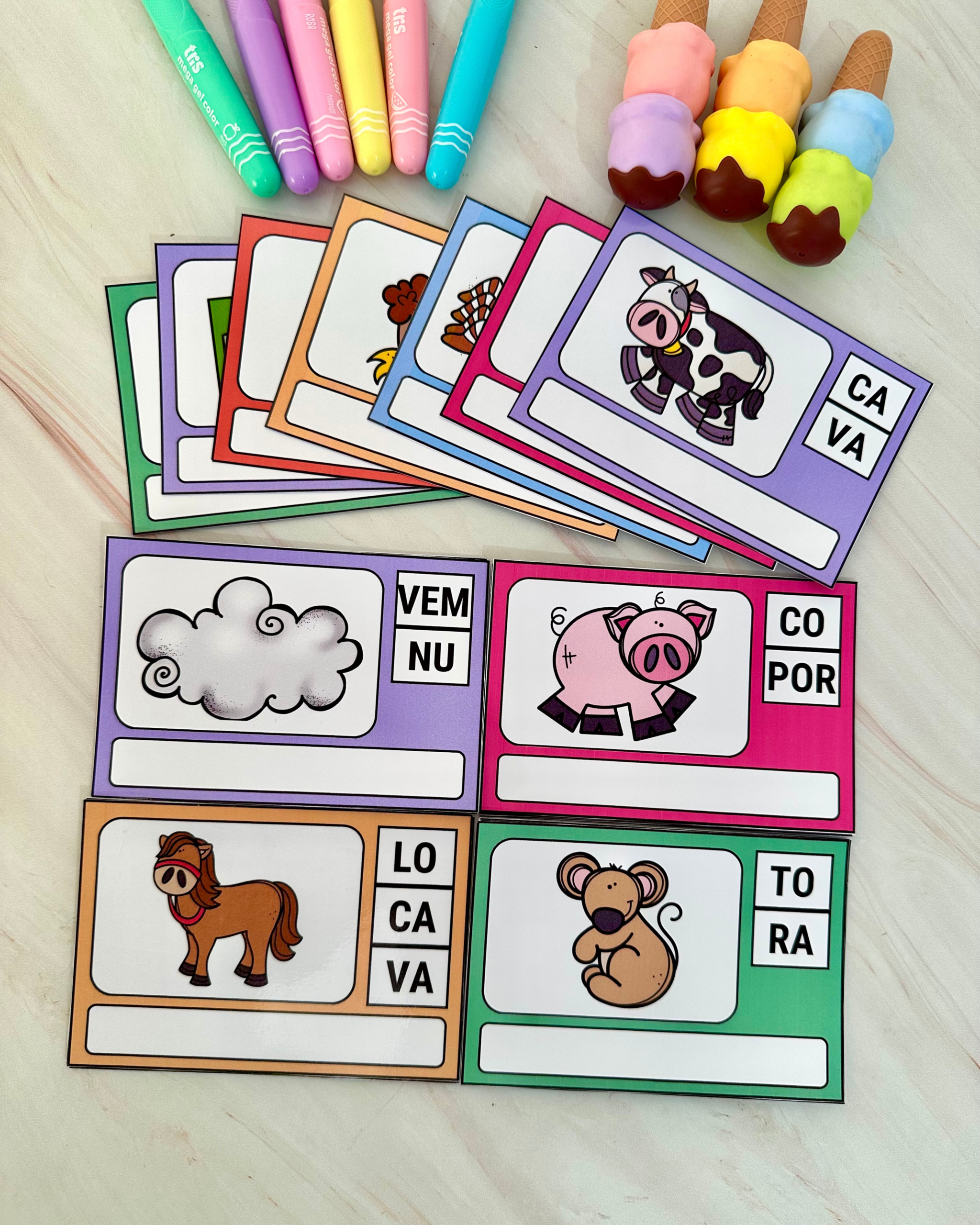 Indicado para crianças em fase de alfabetização e para uso na Educação Especial, o material utiliza fichas ilustradas que incentivam a identificação, leitura e ordenação das sílabas para a construção das palavras de forma estruturada e significativa.