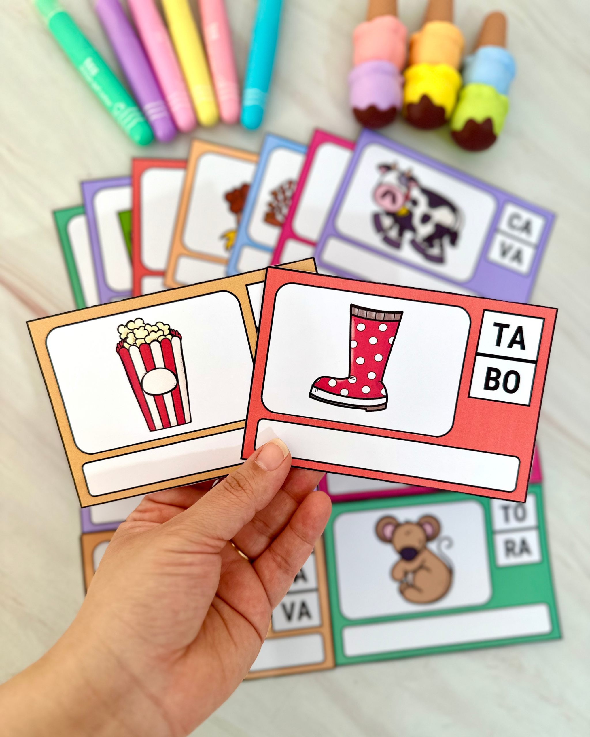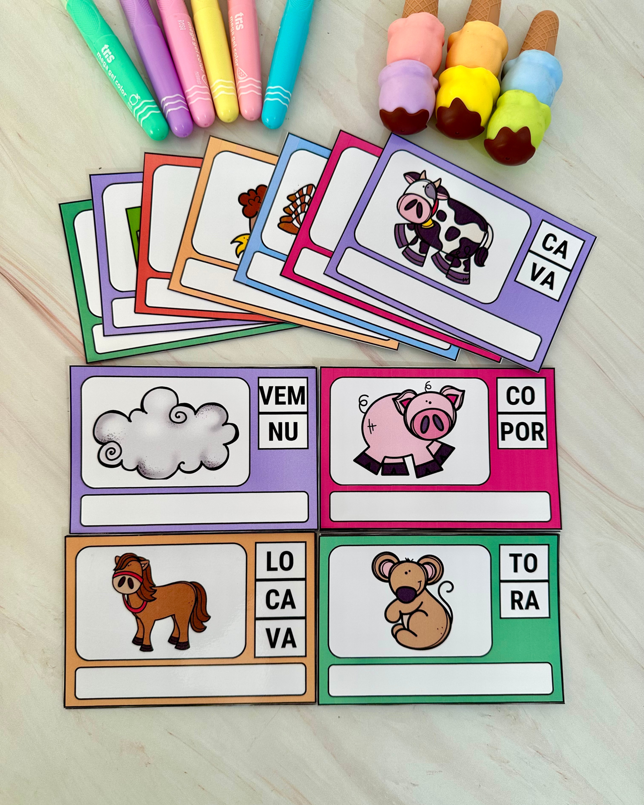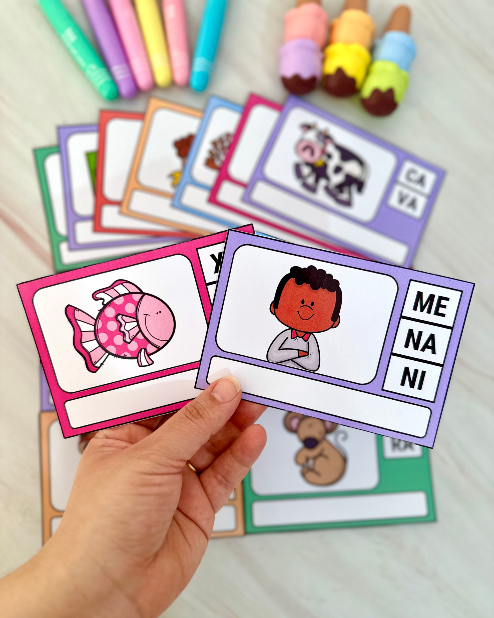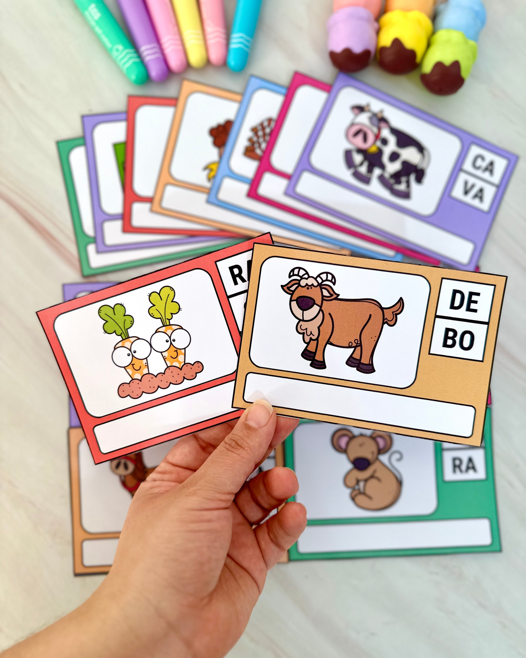 Indicado para crianças em fase de alfabetização e para uso na Educação Especial, o material utiliza fichas ilustradas que incentivam a identificação, leitura e ordenação das sílabas para a construção das palavras de forma estruturada e significativa.